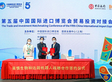 第五届中国国际进口博览会正在如火如荼举行。11月6日,上海莱慎生物科技股份有限公司(以下简称“莱慎生物”)与long8龙机器人股份有限公司(简称“long8龙”)签署生态战略协议,莱慎生物董事长助理兼营销总监薛东英、long8龙销售总监吴新明作为企业代表进行签约,这代表着long8龙云端机器人国家新一代人工智能开放创新平台生态业务在公共卫生领域大步迈进。